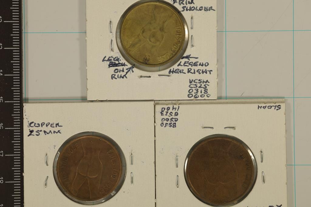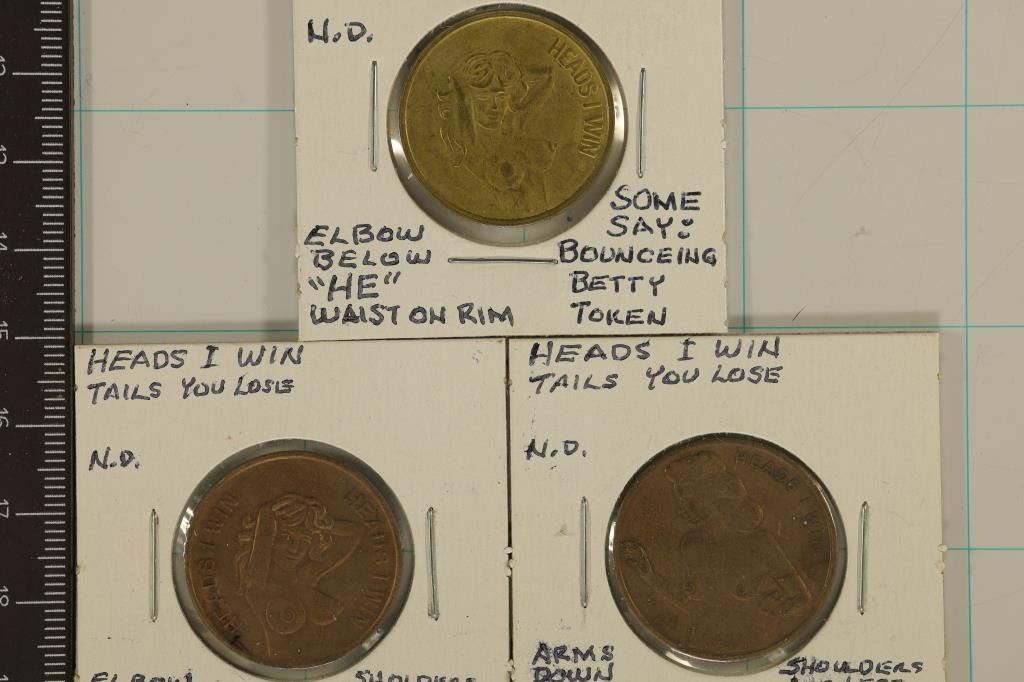 WIN ON OBVERSE AND TAILS YOU LOSE ON REVERSE. ALSO CALLED BOUNCING BETTY TOKENS