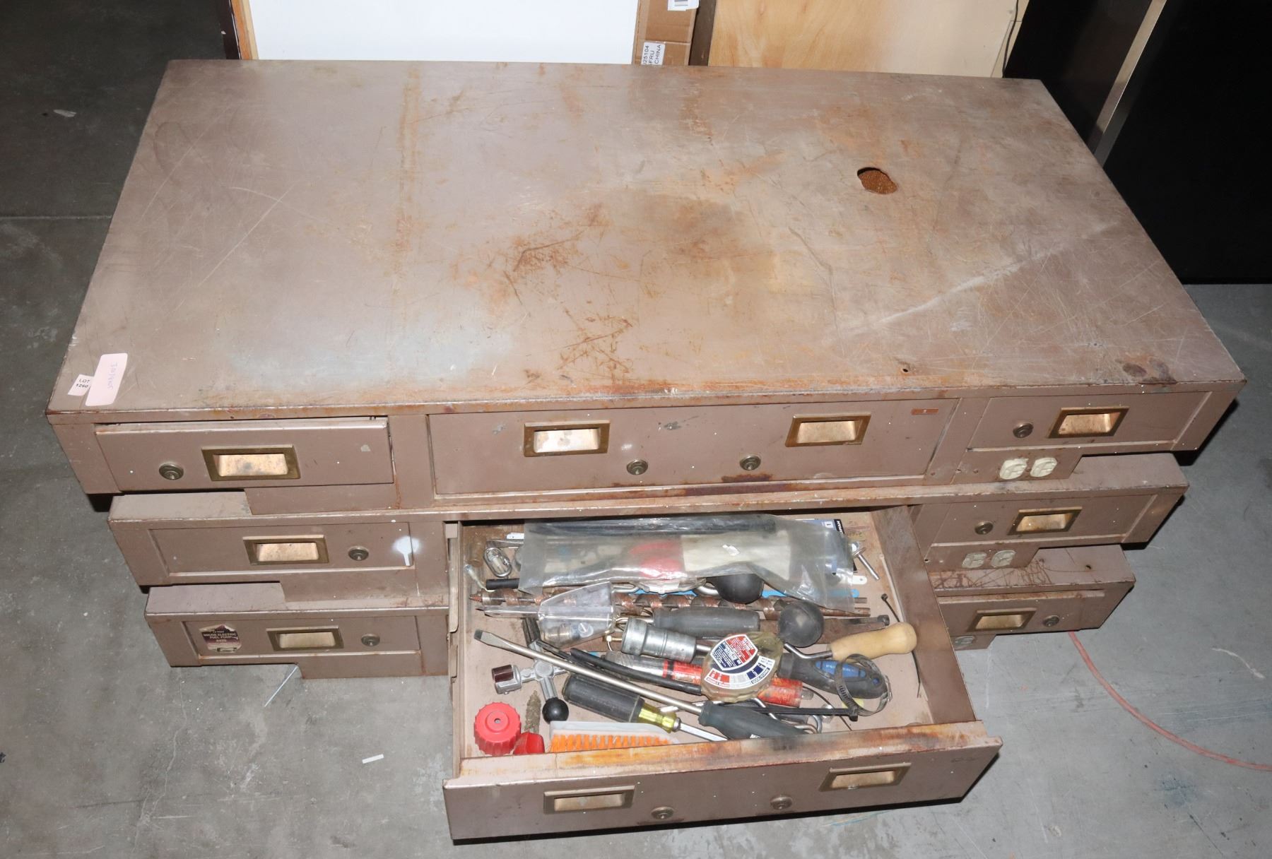 IN LETHBRIDGE 3RD AVE SOUTH). APPROX 4' WIDE X 25" DEEP X 7" TALL. ASSORTED TOOL CONTENTS INCLUDED. NO KEYS