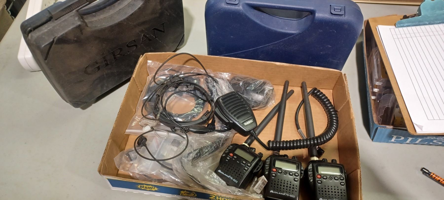 3 MIDLAND MOD 75-822 MOBILE RADIOS C/W 4 PUSH-TO-TALK MIC AND EAR PHONES AND CASE