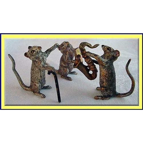 <tr><td>Title:3 MINIATURE VIENNA BRONZE MICE SAXOPHONE CHEESE</td></tr>