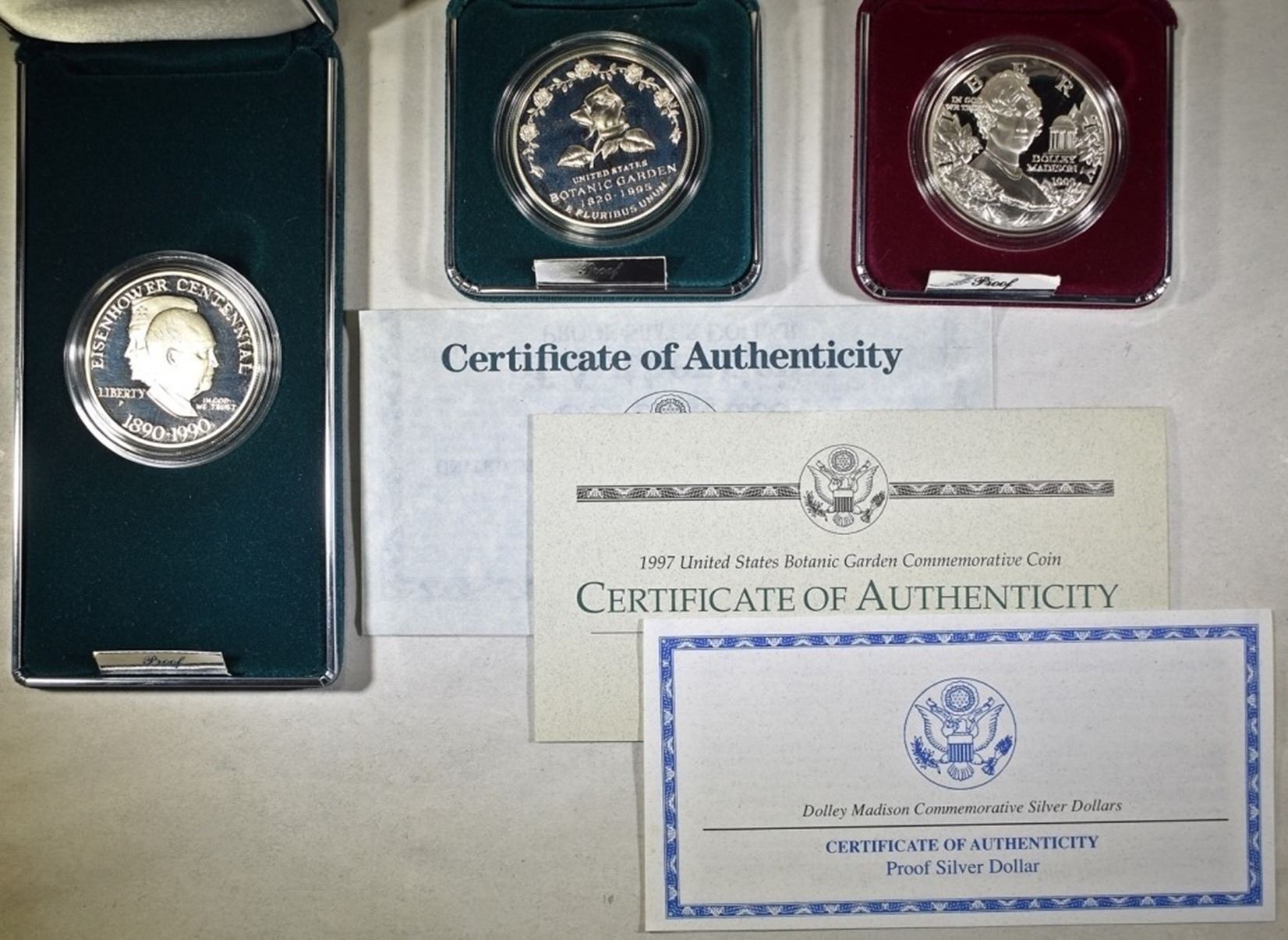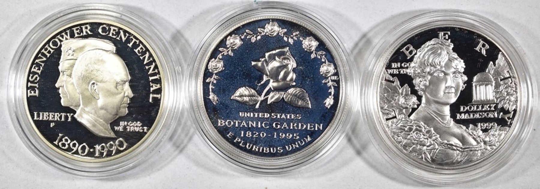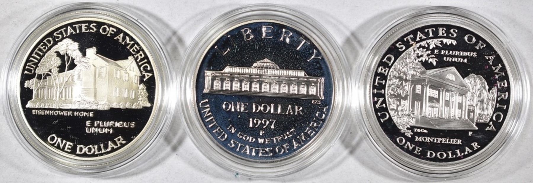 1990 EISENHOWER, 1997 BOTANIC GARDENS & 1999 DOLLEY MADISON ORIG PACKAGING ESTIMATE $90 - $100.