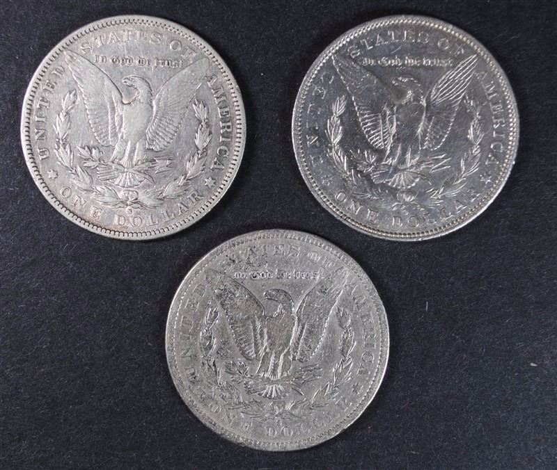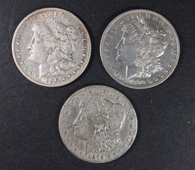 3 MORGAN DOLLARS 1879-S, 92-O, 96-S