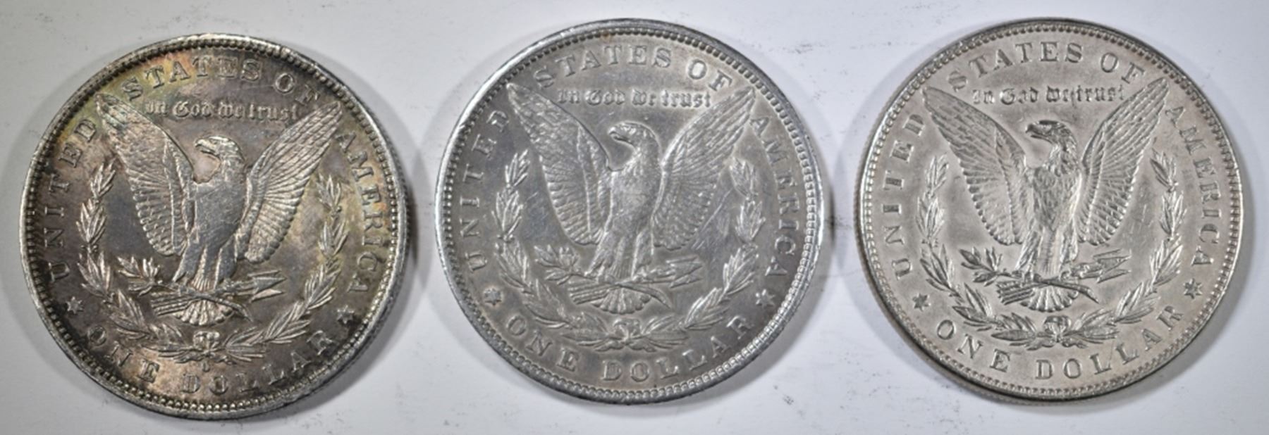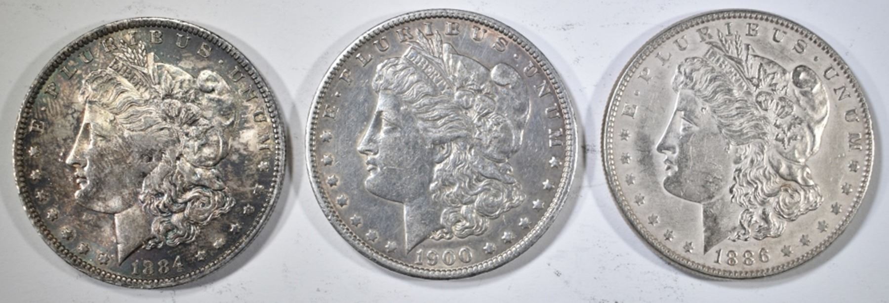 1886 AU CLEANED, 1900 XF CLEANED, 1884-O BU. ESTIMATE $75 - $100.