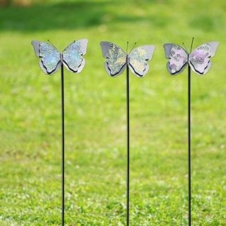 3 MOSAIC GLASS BUTTERFLY STAKES - 36.5"H 8"W - GLASS & SHEET METAL