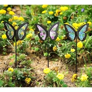 3 MOSAIC GLASS BUTTERFLY STAKES - 17"H 5.5"W - GLASS & SHEET METAL