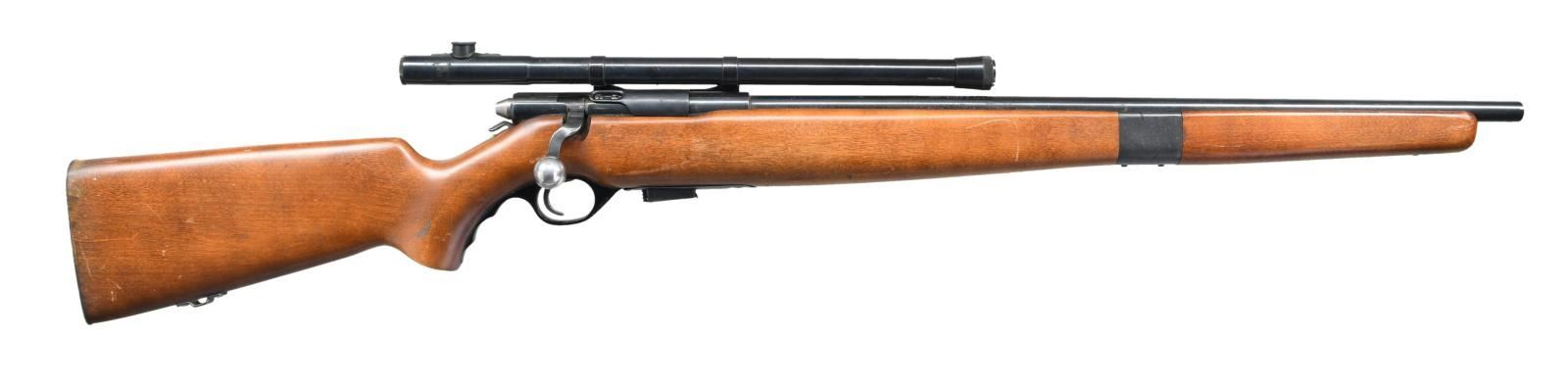 1) MODEL 42M(b). Cal. 22 S, L & LR. NSN. Bbl. 23". Mag fed bolt action rifle. Left side mounted Mossberg M4 scope w/ fine crosshair reticle & poor cloudy optics. No iron sights present. Pistol grip stock w/ slots for sling hardware. MAGS: 1-7 rd. detachable. CONDITION: stock shows scattered handling wear & light dings. Metal retains 75% original blue w/ scattered oxidation. Very good bore. (23-1584/MJC). 2) MODEL 46M-B. Cal. 22 S, L & LR. NSN. Bbl. 23". Aperture rear sight. Folding combination front sight. Pistol grip hardwood stock w/ bottom mounted slots for sling hardware. CONDITION: stock has a light chip on right side near buttplate & scattered handling wear. Front stock screw shows slot damage. Metal retains 95% original blue w/ some high edge wear. Very good plus bright bore. (23-1586/MJC). 3) LEND LEASE MODEL 42MB(a). Cal. 22 S, L & LR. S# 39663. Bbl. 23". Receiver mounted aperture rear sight. Combination front sight. Receiver & bbl. both marked w/ British proofs & "US PROPERTY". Bbl. also has 1948 sale date. Pistol grip walnut stock w/ bottom mounted sling swivels. Grooved brass buttplate. One of fire control indicator buttons on stock is missing. MAGS: 1-7 rd. detachable. CONDITION: stock has added varnish w/ scattered flaking & handling wear. Metal retains 70% original blue w/ scattered freckling & fading. Very good bore. (23-1592/MJC). ALL CURIO. $450-750.
