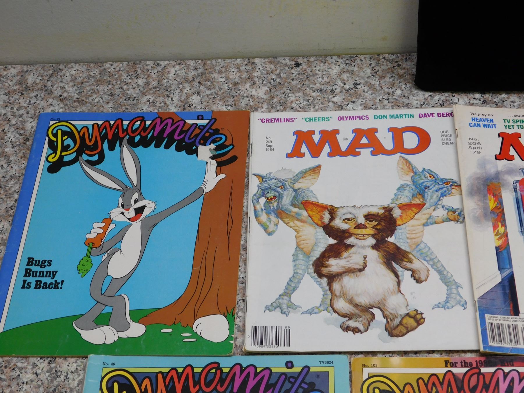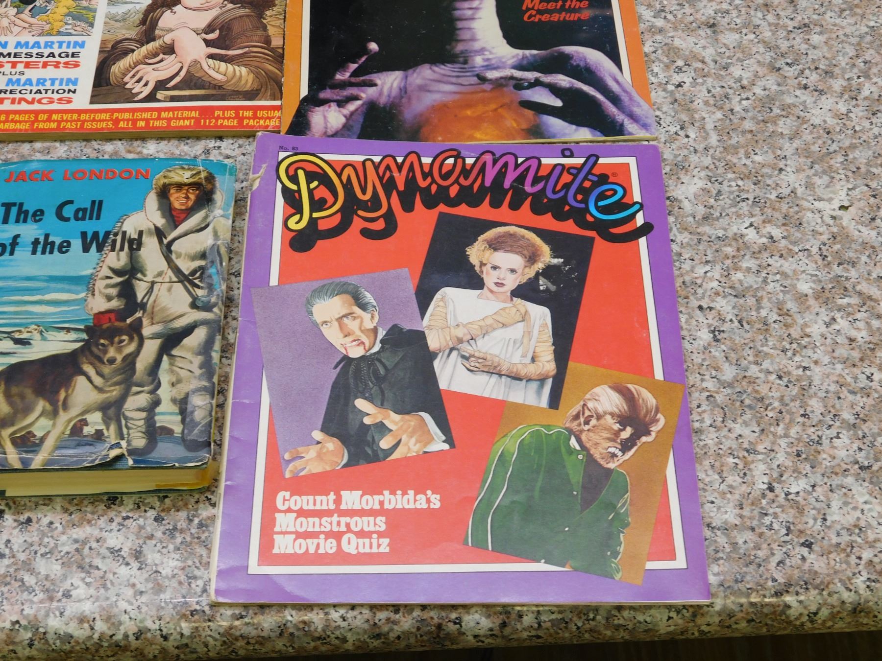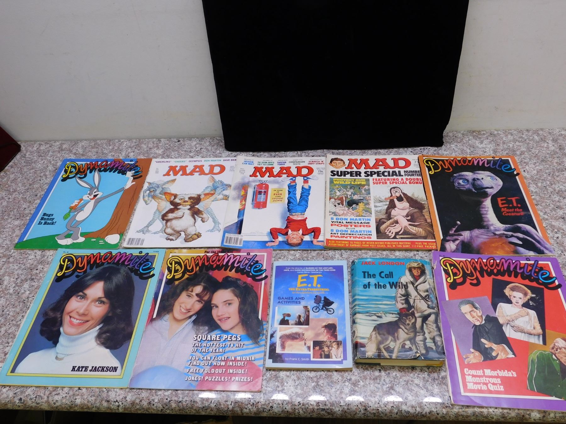 3 Mad Magazines No. 14, 206, 249 (Gremlins), Jack London Book, E.T. Game book, 5 Dynamite