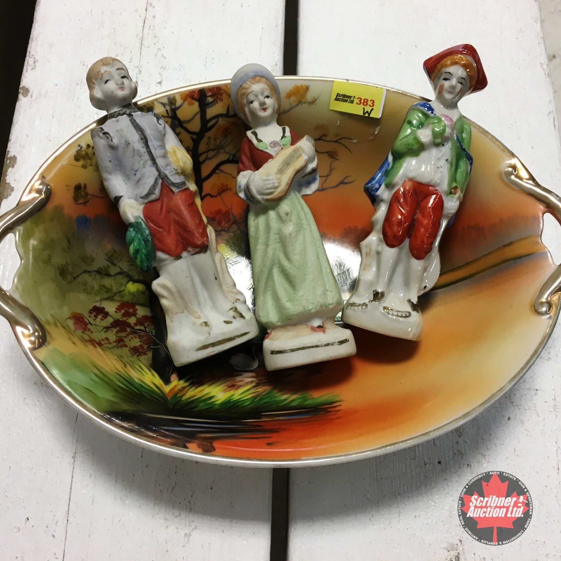 3 "Made in Occupied" Japan Figurines in Painted Dish