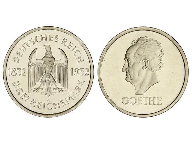 3 Marcos. 1932-A. REPÚBLICA DE WEIMAR. BERLIN. AR. Centenario Goethe. KM-76. PROOF.