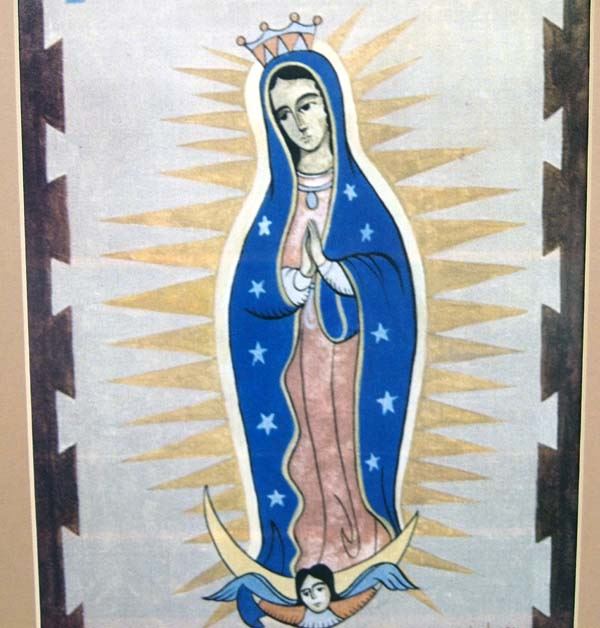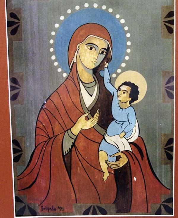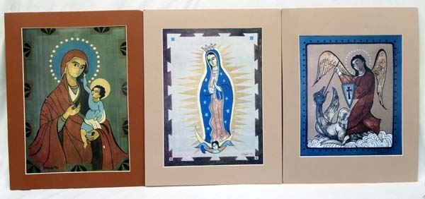 3 Matted Religous Prints by Delgado. #1 Madona and Child, #2 St. George & the Dragon, & #3 Our Lady of Guadalupe. These prints measure approx. 14.5''H x 10.5''W.