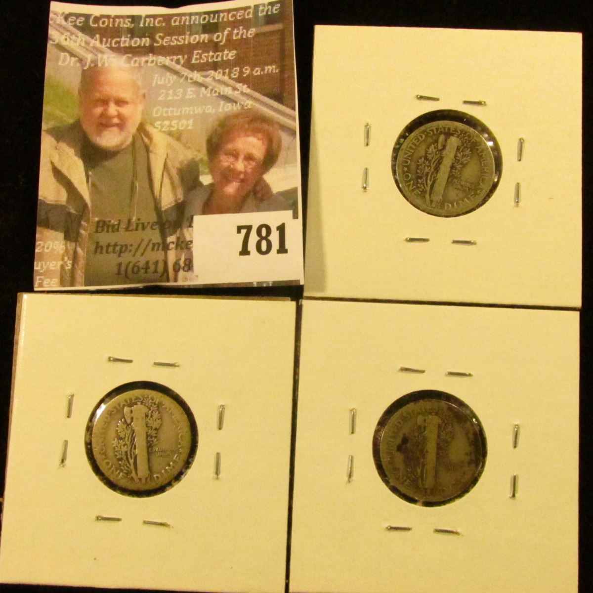 Absentee bidders will receive an invoice detailing their successful bid and shipping charges. Payment must be made within five days of receipt of notification and lots will be mailed after payment in full has been made.
