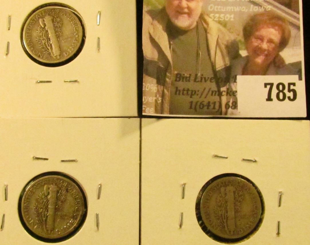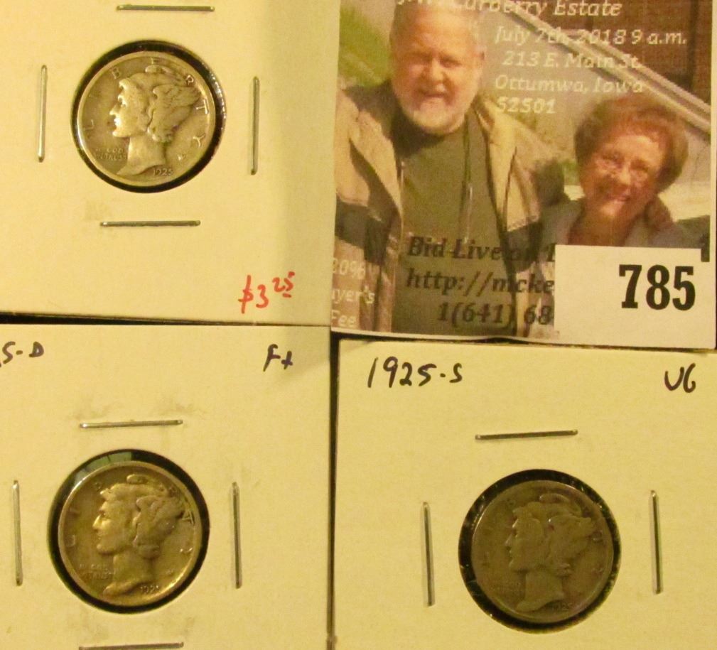(3) Mercury Dimes, 1925 VG+, 1925-D F+, 1925-S VG, group value $19+