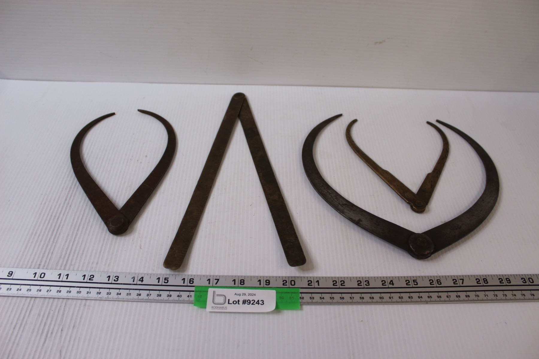 (3) Metal Caliper Measuring Tools & Metal Folding Ruler