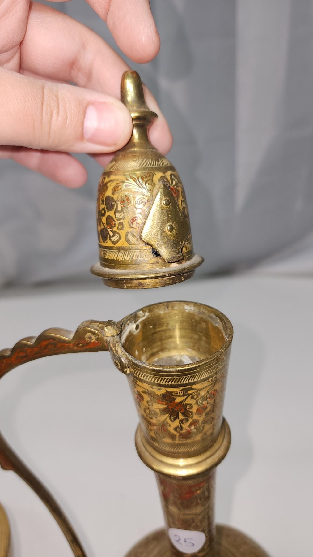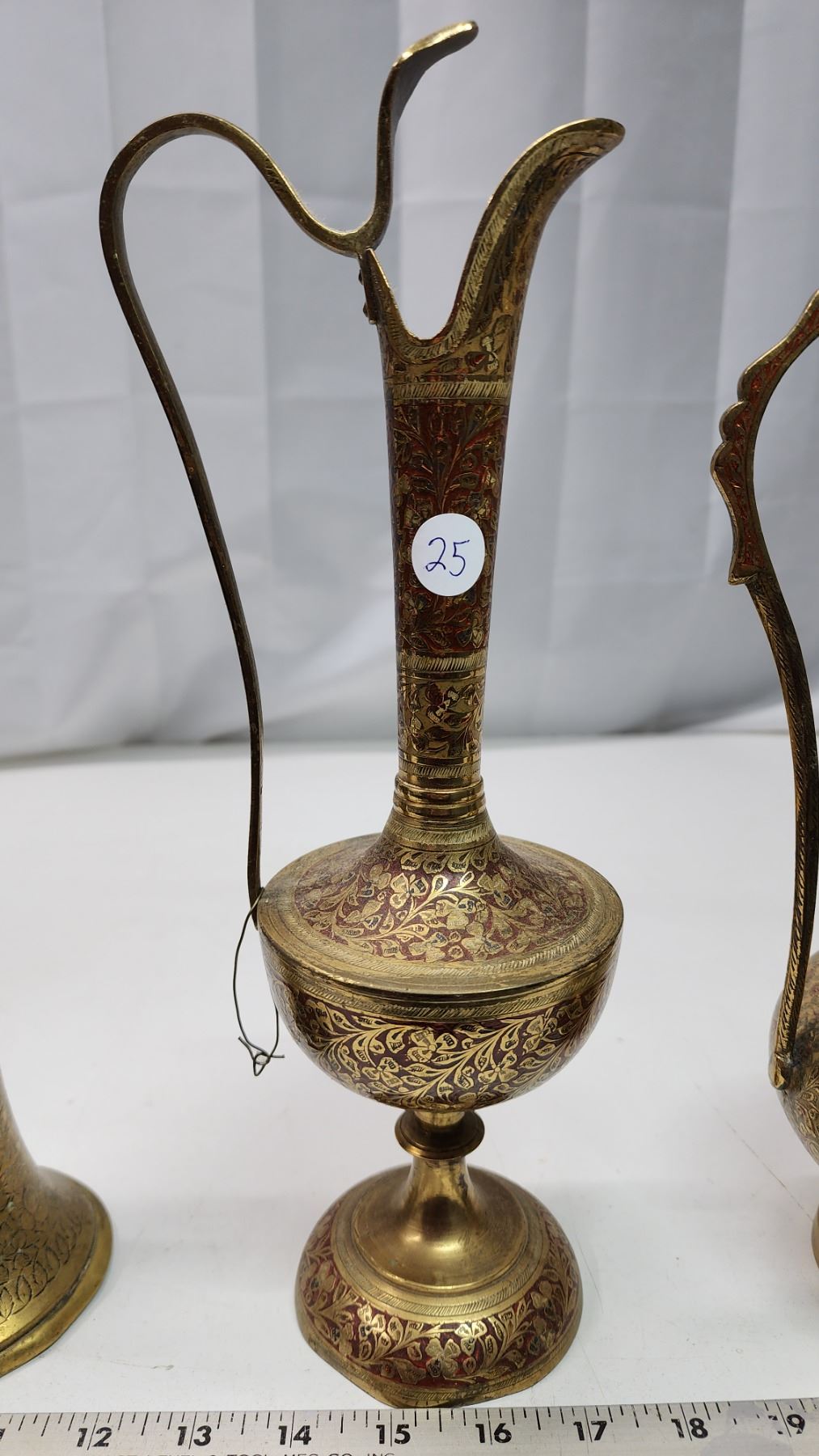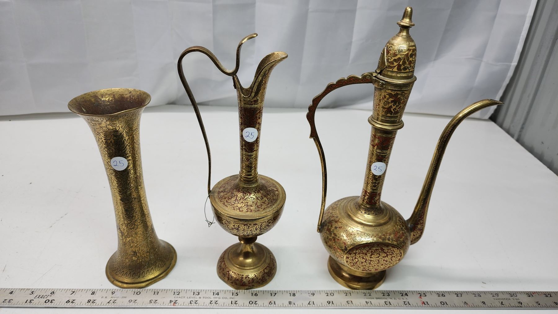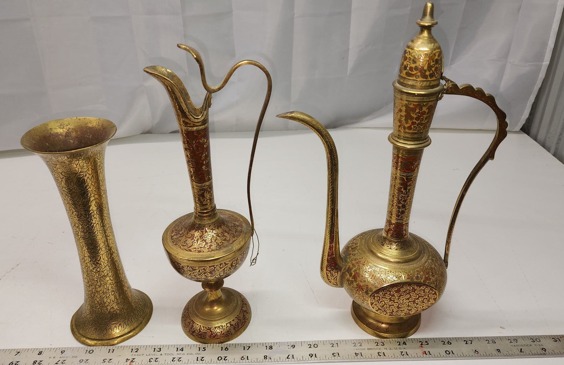 3 Metal, bronze colored pitchers and vase