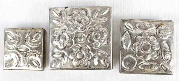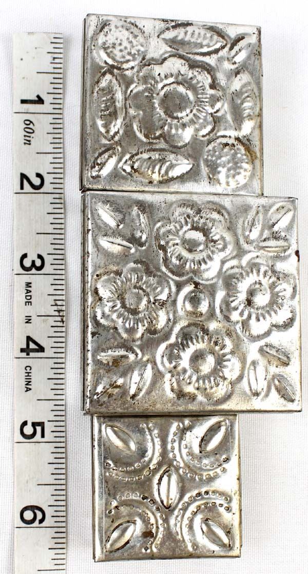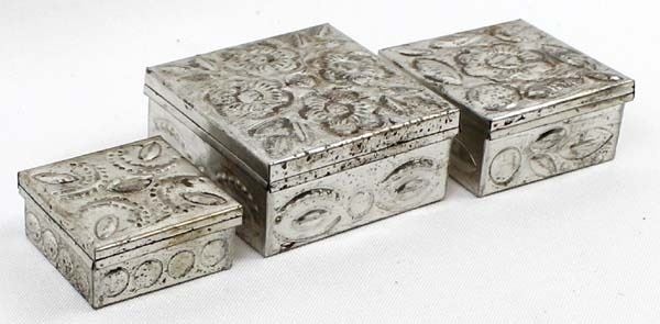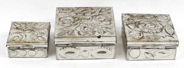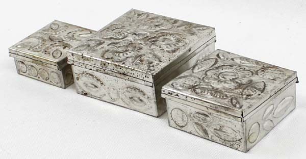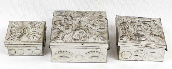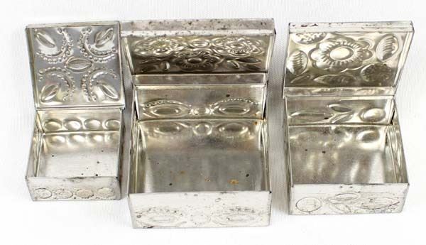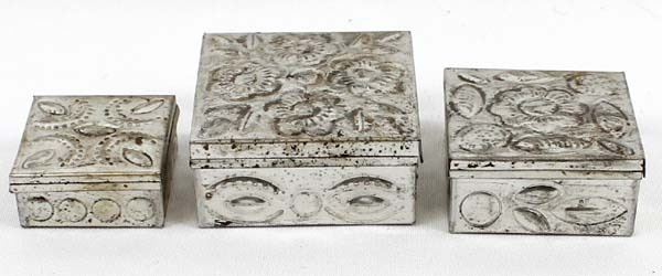 3 Mexican Graduated Punched Tin Trinket Boxes, largest measures 1'' x 2.5'' x 2.5''