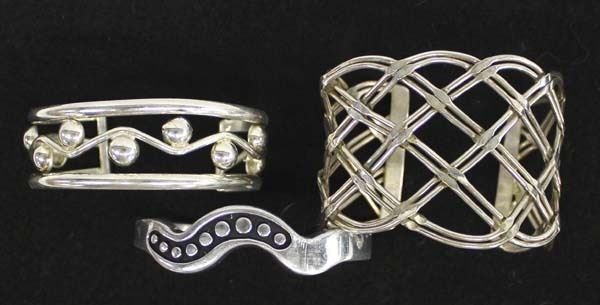 3 Mexican Metal Cuff Bracelets, largest measures 7.5'' inside including gap x 2''W