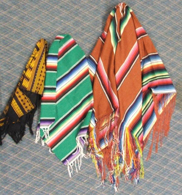 3 Mexican Textile Throws, largest measures without fringe 66'' x 62''. SHI $25.
