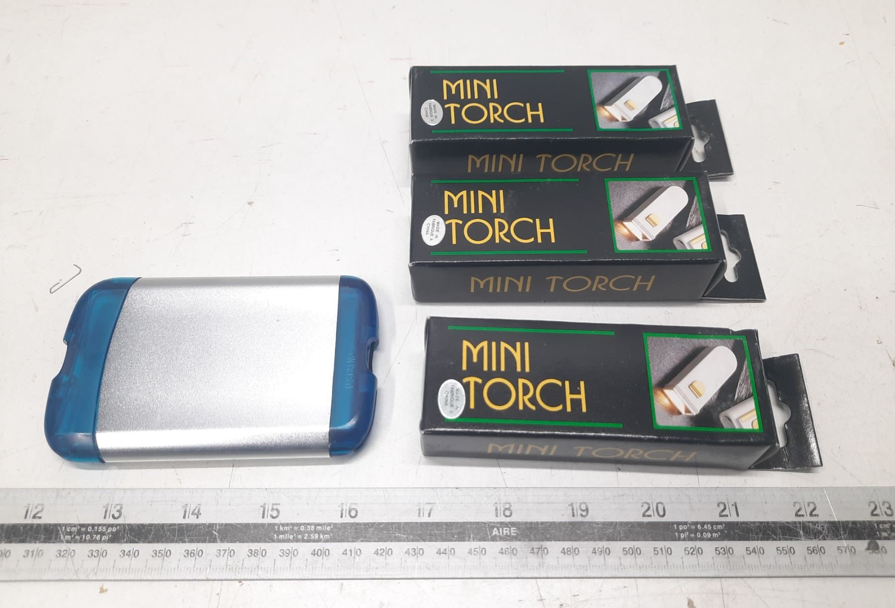 (3) Mini Torch (New) and Pocket Size Card Holder.