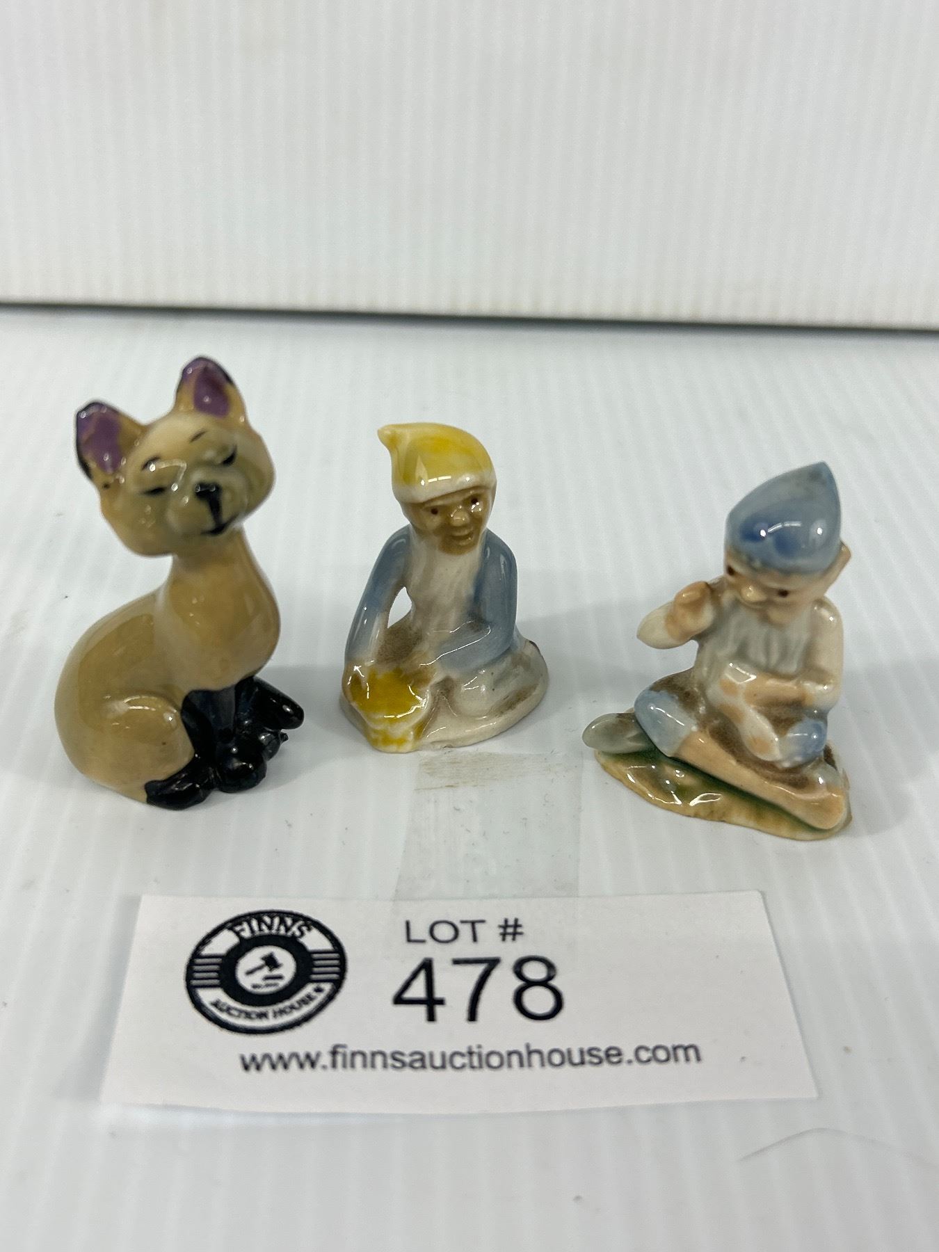 3 Miniature Wade Figures - 2 Pixies & Disney Siamese Cat