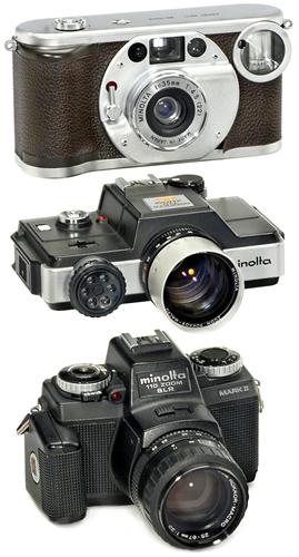 3 Minolta Cameras Minolta, Japan. 1) "Minolta PROD 20's", 1990. Subminiature camera, nostalgia design. With box. Limited edition! - 2) "Minolta Mark II", 1979. Subminiature SLR for pocket-film. Zoom lens 25-67 mm. Camera is working. - And: 3) "Minolta 110 Zoom SLR", 1976. First subminiature SLR camera by Minolta. Zoom lens 25-50 mm. Camera is working.<Br>