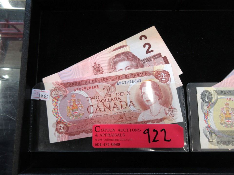 1974 Two Dollar Bill, and Two 1986 Two Dollar Bills.