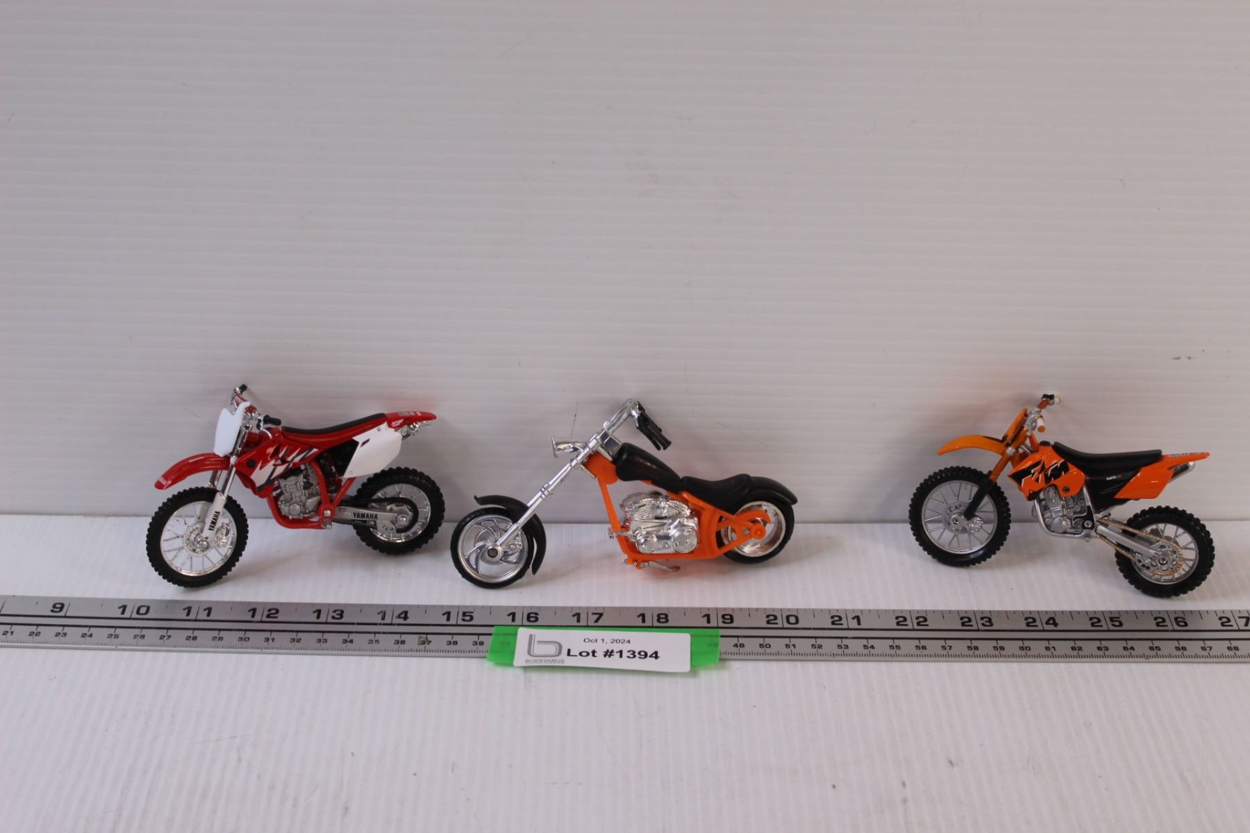 (3) Model Dirt Bikes & Chopper - Approx 1:43 Scale