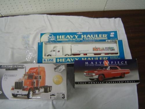 AMT 31170 1/25 '62 Pontiac Catalina, Testors 69001 1/28 Peterbuilt 378, K-Line 1/87 Heavy Hauler Semi