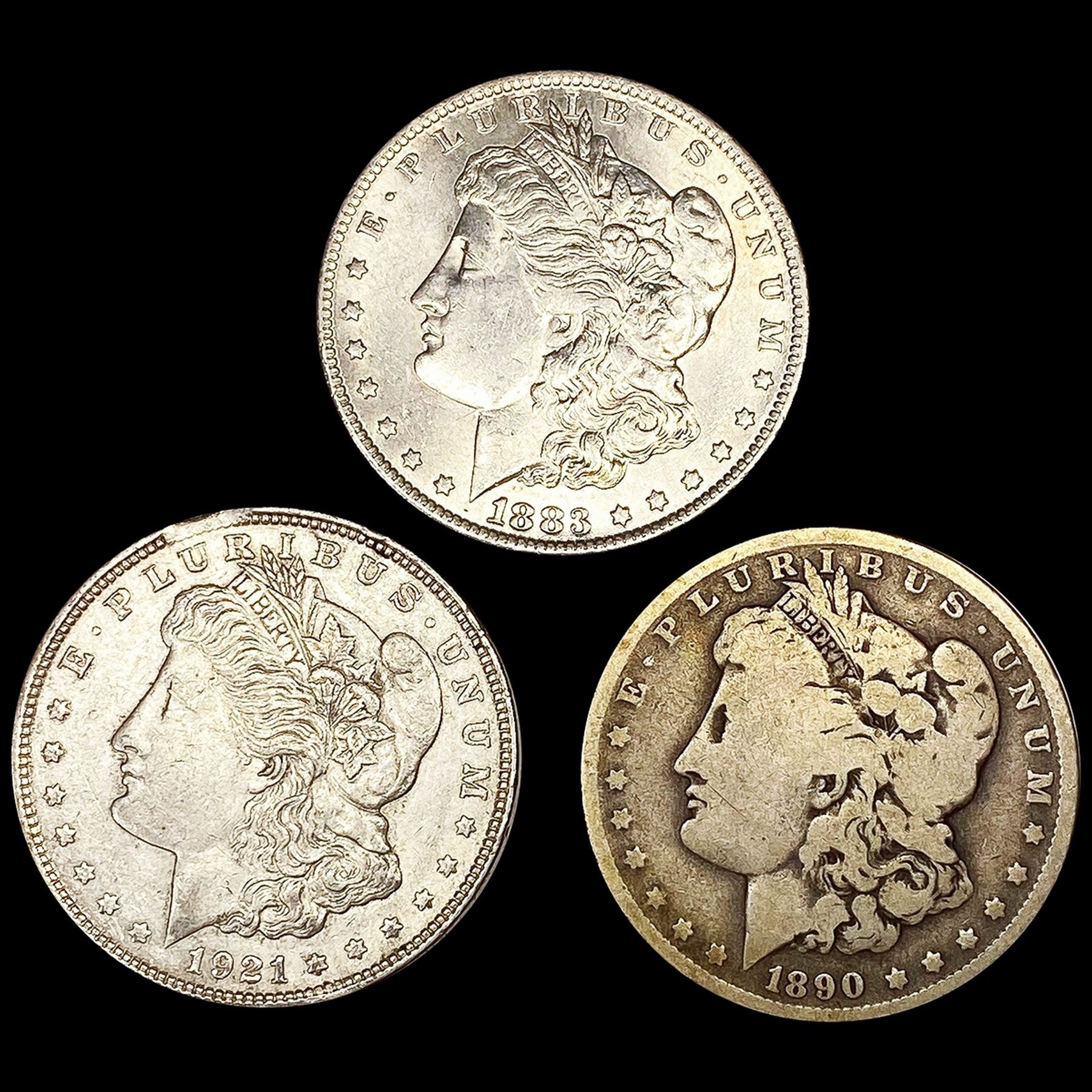 (3) Morgan Dollars (1883-O, 1890-O, 1921)