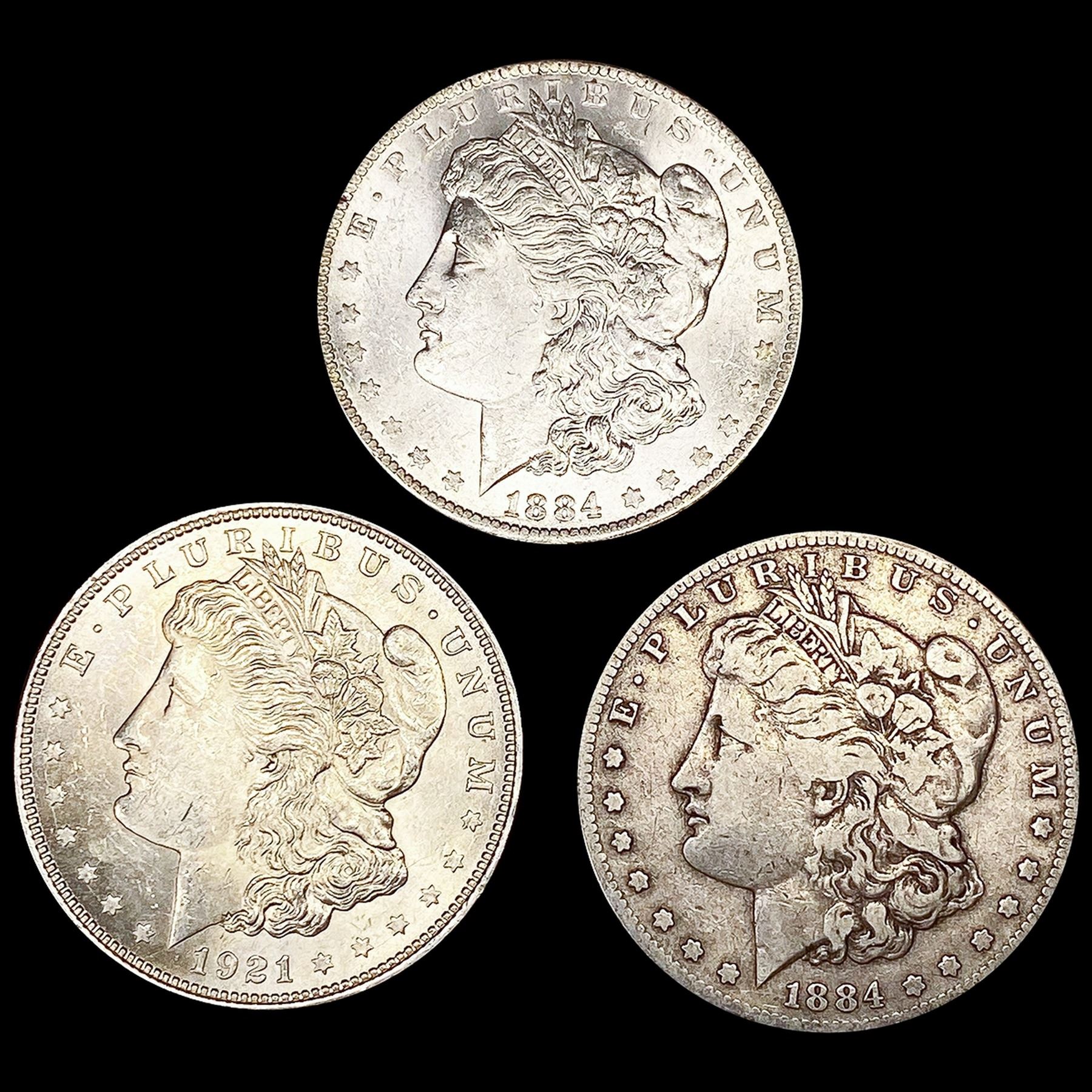 (3) Morgan Dollars (1884-S, 1884-O, 1921)