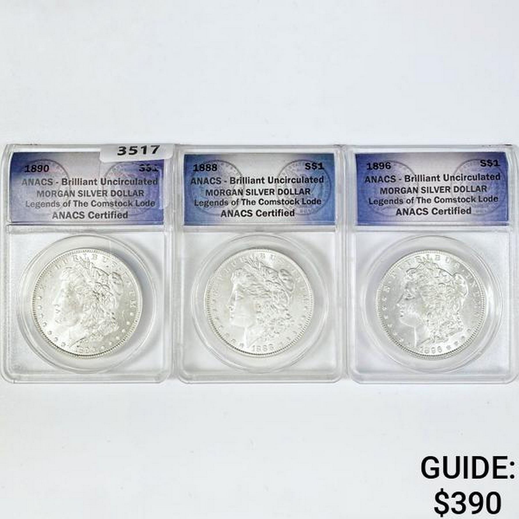 (3) Morgan Silv. Dollar ANACS BUComstock Lode 1888