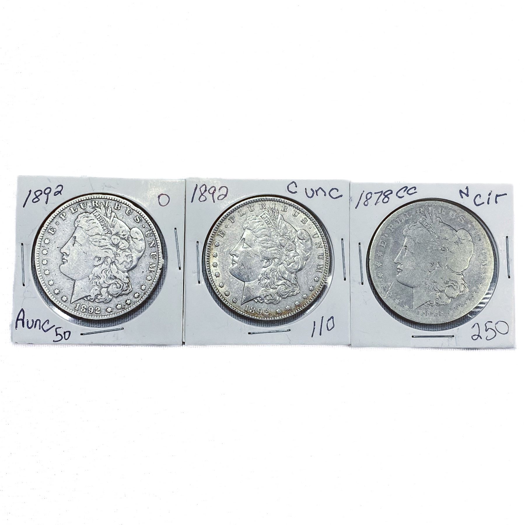 (3) Morgan Silver Dollars (1878-CC, 1892, 1892-O