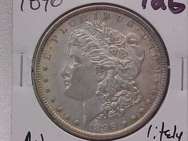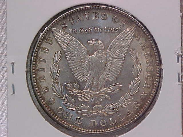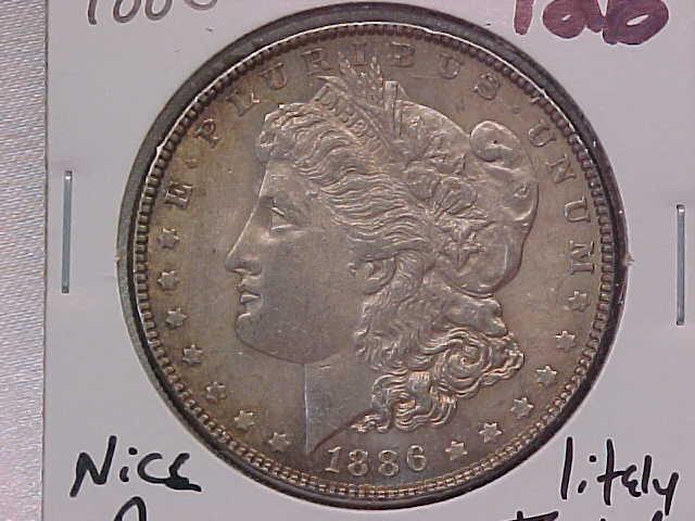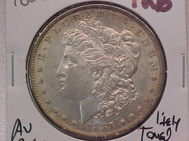 3 Morgan, all AU, all light toning: 1885 rim dings, 1886, 1896