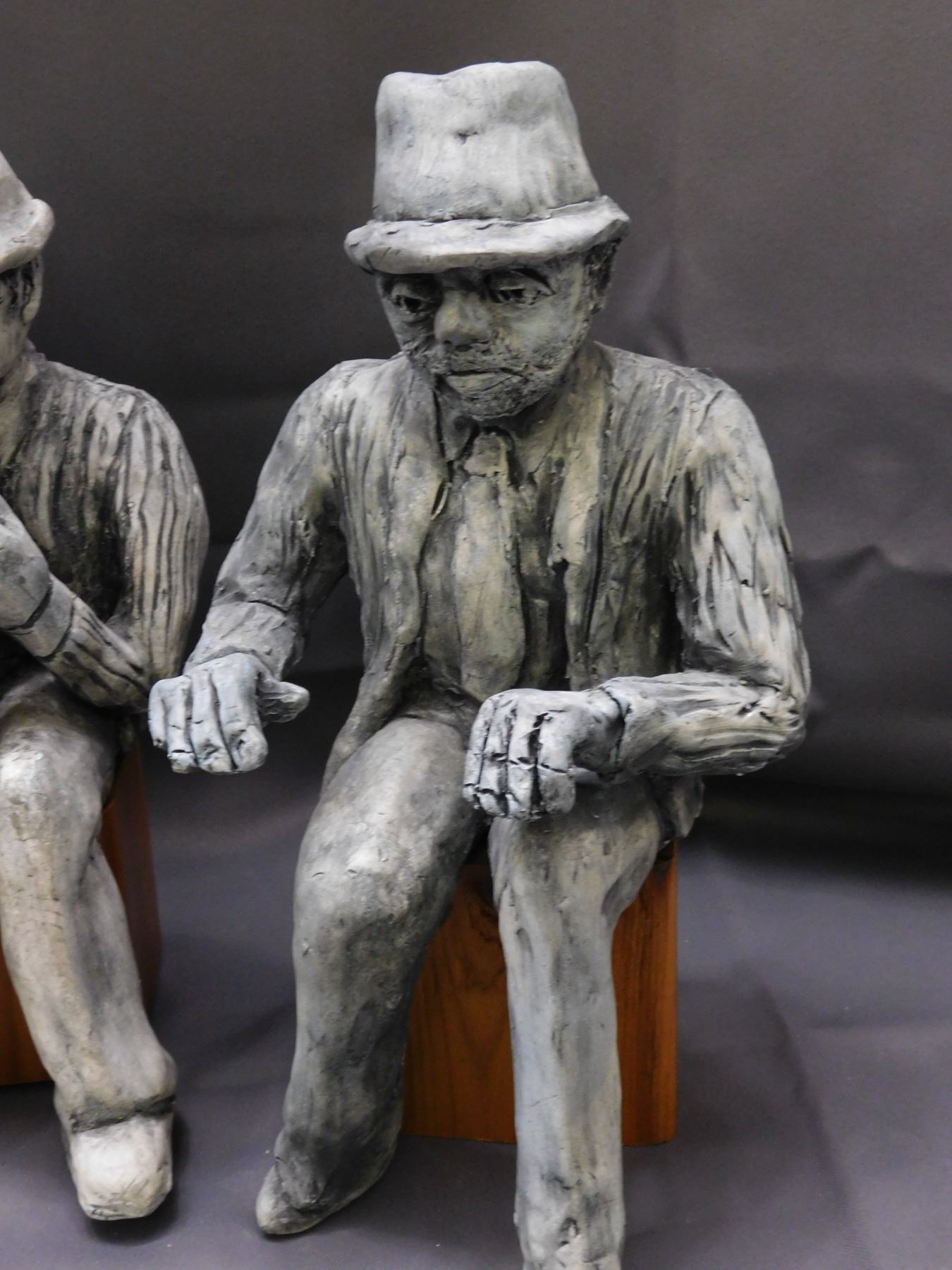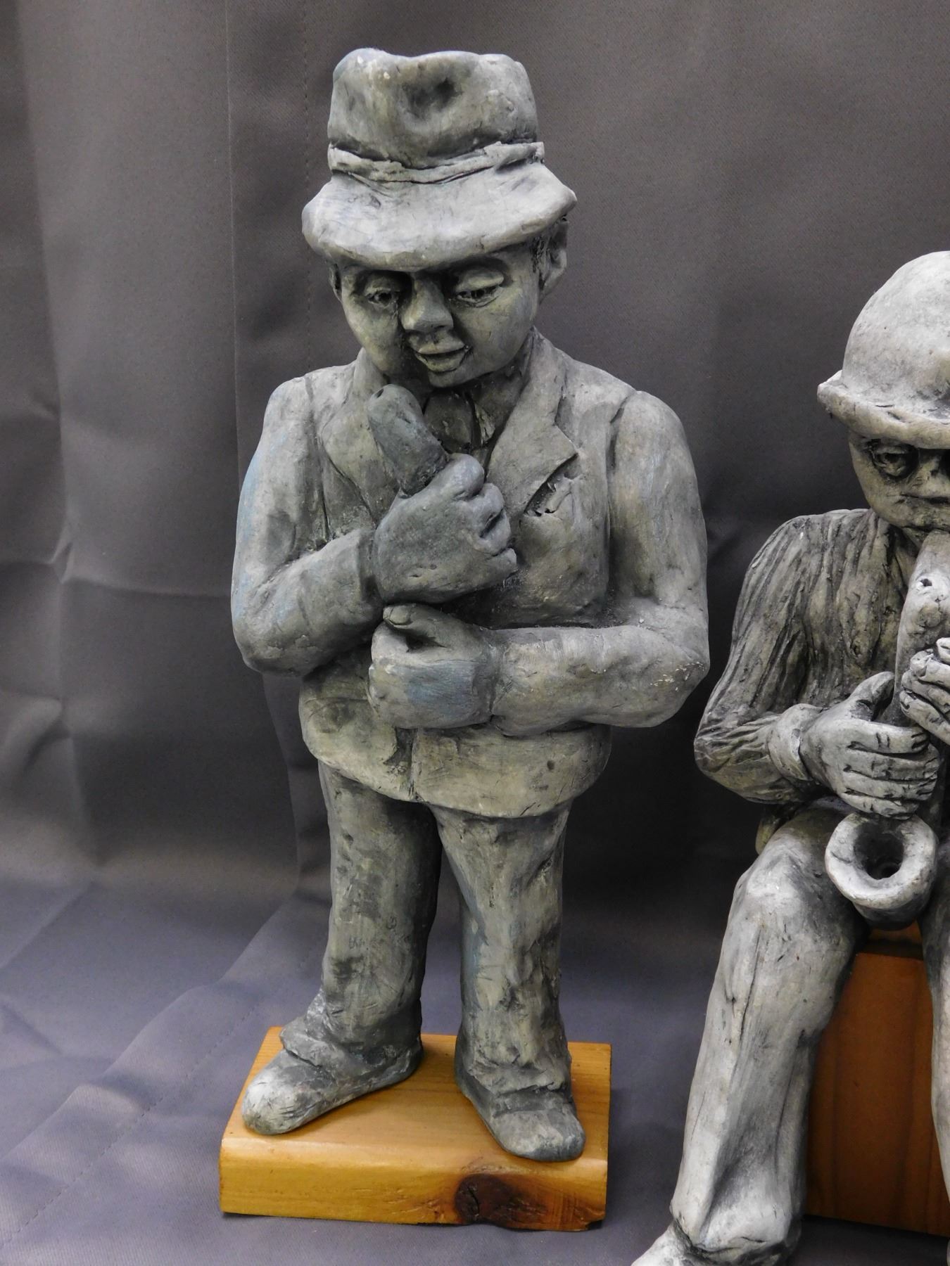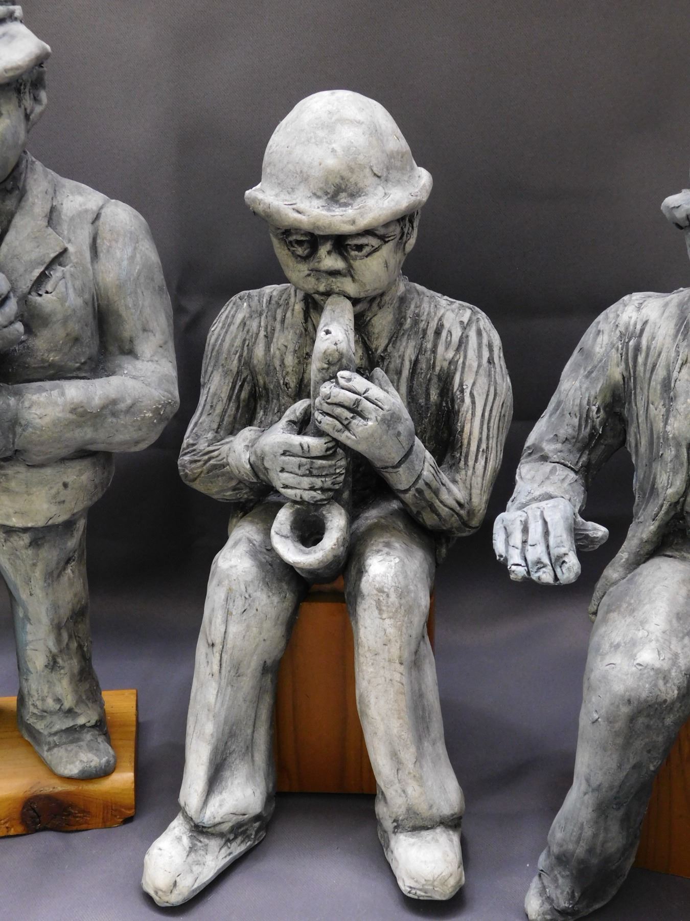 13", 12" and 11" tall respectively. Made by local artist, has exhibited work in galleries previously. Mounted on wood blocks.