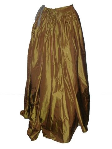 From 2011's 'The Three Musketeers,' this is Cougar's (Susanne Wolff) hero wardrobe ensemble. The costume consists of a gold and red, floral print custom long sleeve dress with puffy shoulders, a metallic gold fabric underskirt/slip, a quilted red cotton underskirt, a handheld plastic and wood masquerade mask, a dark red fabric hat with white feather, a faux gold & pearl necklace and four assorted rings, and a pair of light brown leather shoes with bows. Includes studio wardrobe tag.