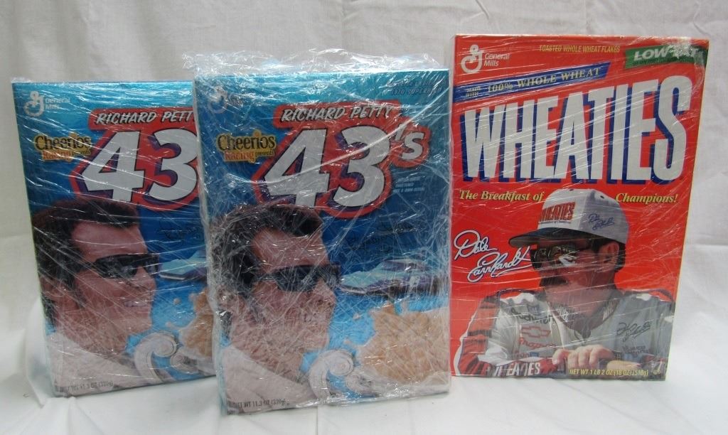 WHEATIES FEATURING DALE EARNHARDT. 2-2003 RICHARD PETTY 43's, CEREAL STILL IN THEM. HAVE BEEN WRAPPED IN PLASTIC WRAP.