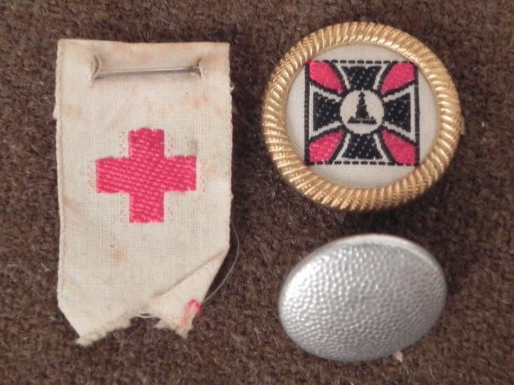3 NAZI ITEMS-WEHRMACHT MARKED ASSMANN--VETERANS PIN-ROTES KREUZ FABRIC PINNICE PERIOD ITENS