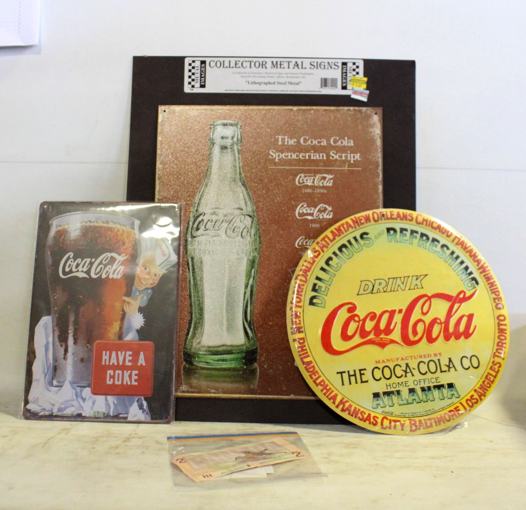 3 NEW COCA-COLA METAL SIGNS