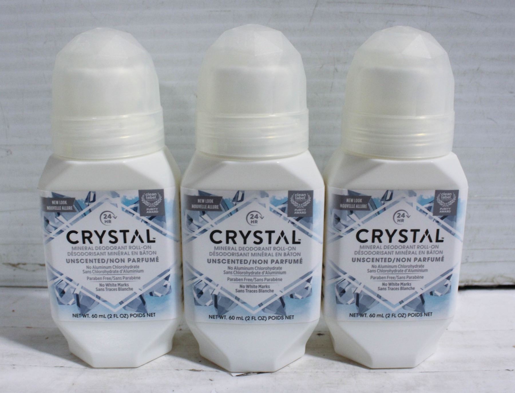 3 NEW CRYSTAL UNSCENTED MINERAL DEODORANT ROLL-ON