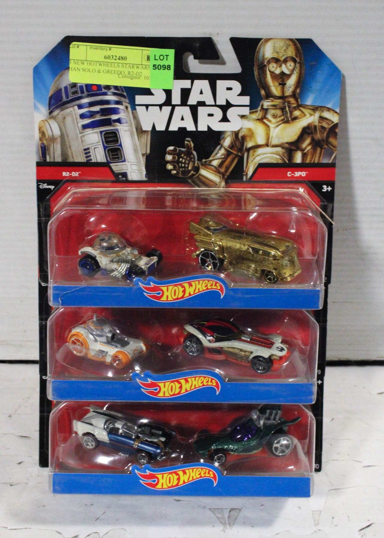 3 NEW HOTWHEELS STARWARS: HAN SOLO & GREEDO, R2-D2