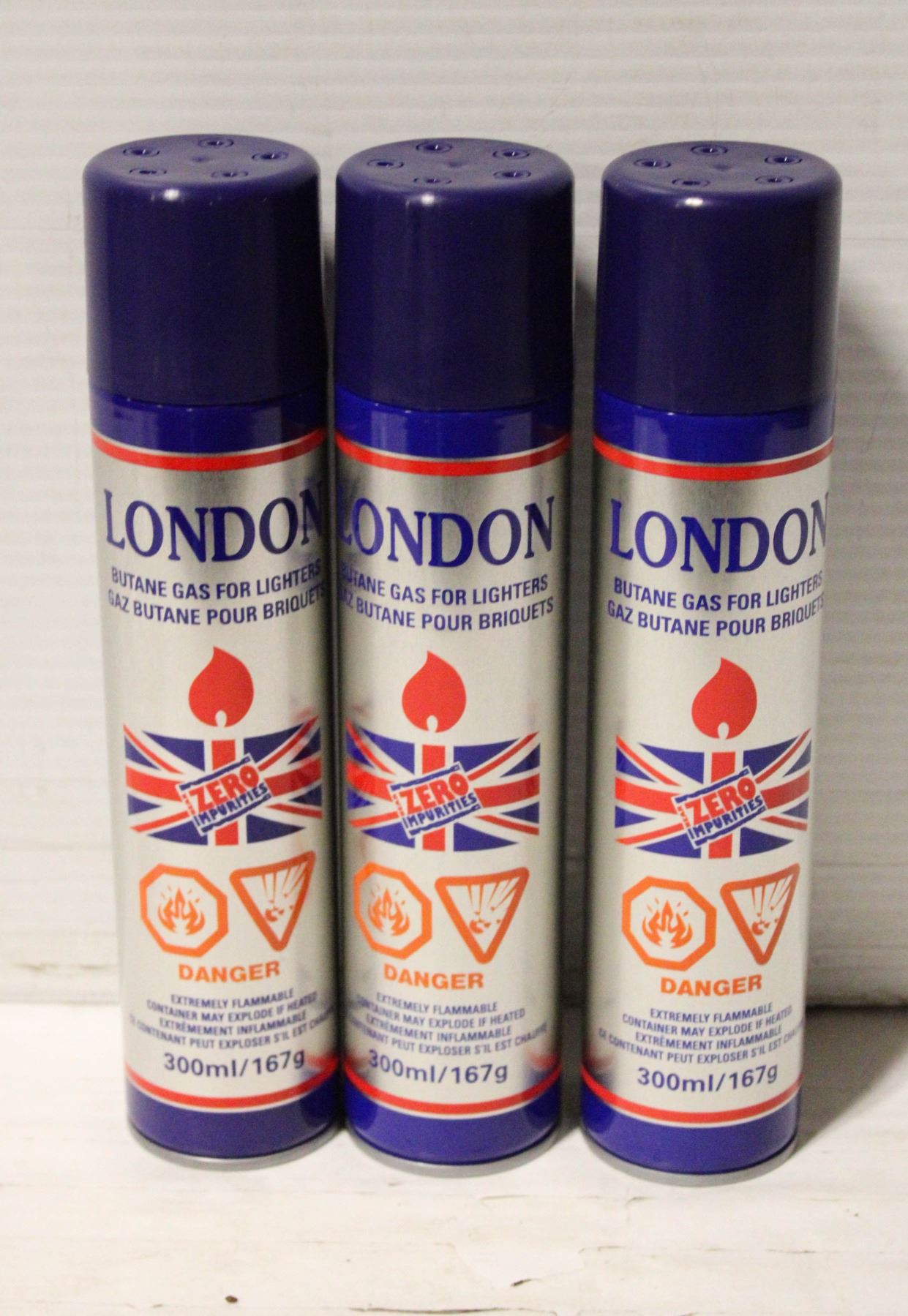 3 NEW LONDON BUTANE GAS FOR LIGHTERS - 300ML
