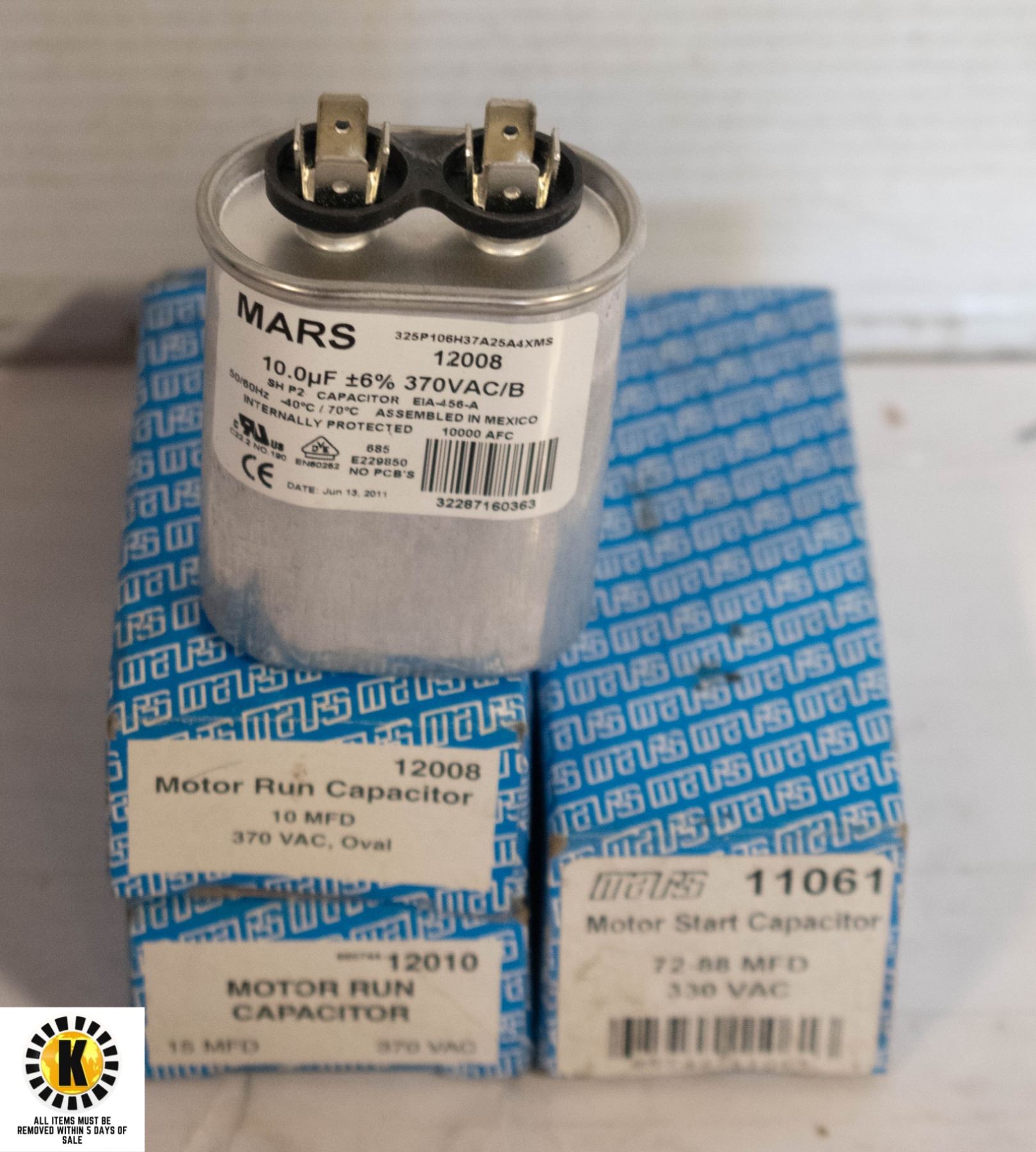 MARS REPLACEMENT COMPONENTS; 10.0 MFD - 370 VAC OVAL; 1 x 685744-12008; 1 x 685744-12010; 1 x 685744-11061.
