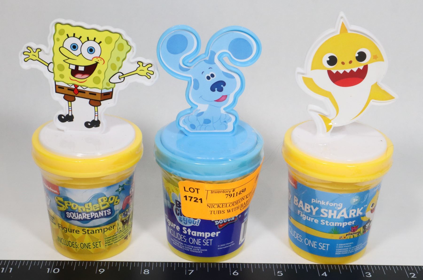 BLUES CLUES, AND SPONGE BOB SQUARE PANTS FIGURE STAMPERS. EACH TUB HAS 3OZ OF DOUGH(85.05G)