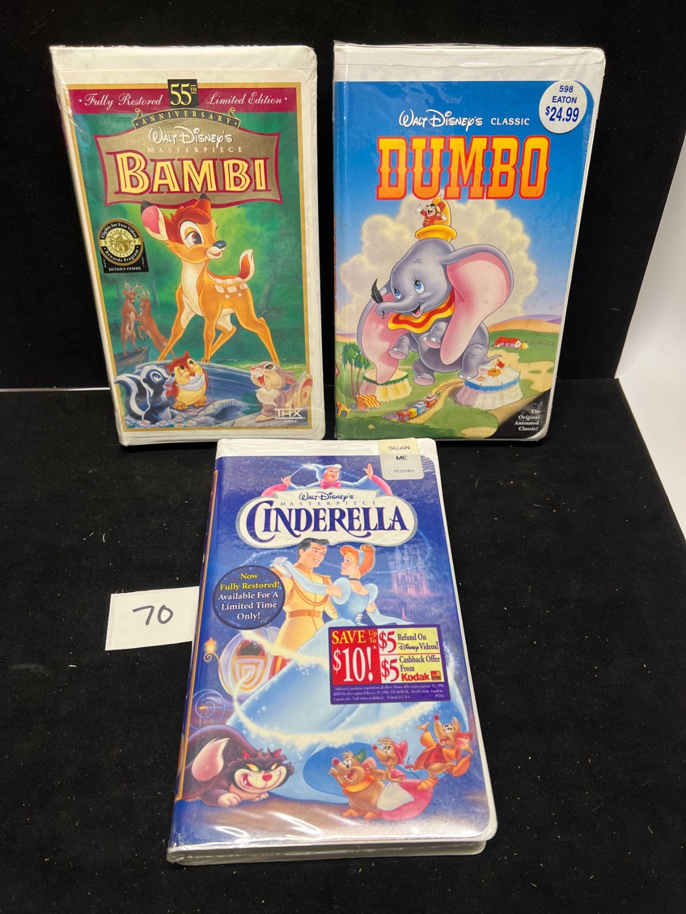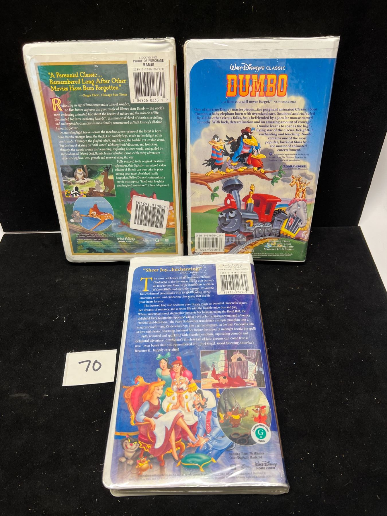 3 NEW SEALED Disney VHS Movies BAMBI DUMBO CINDERELLA