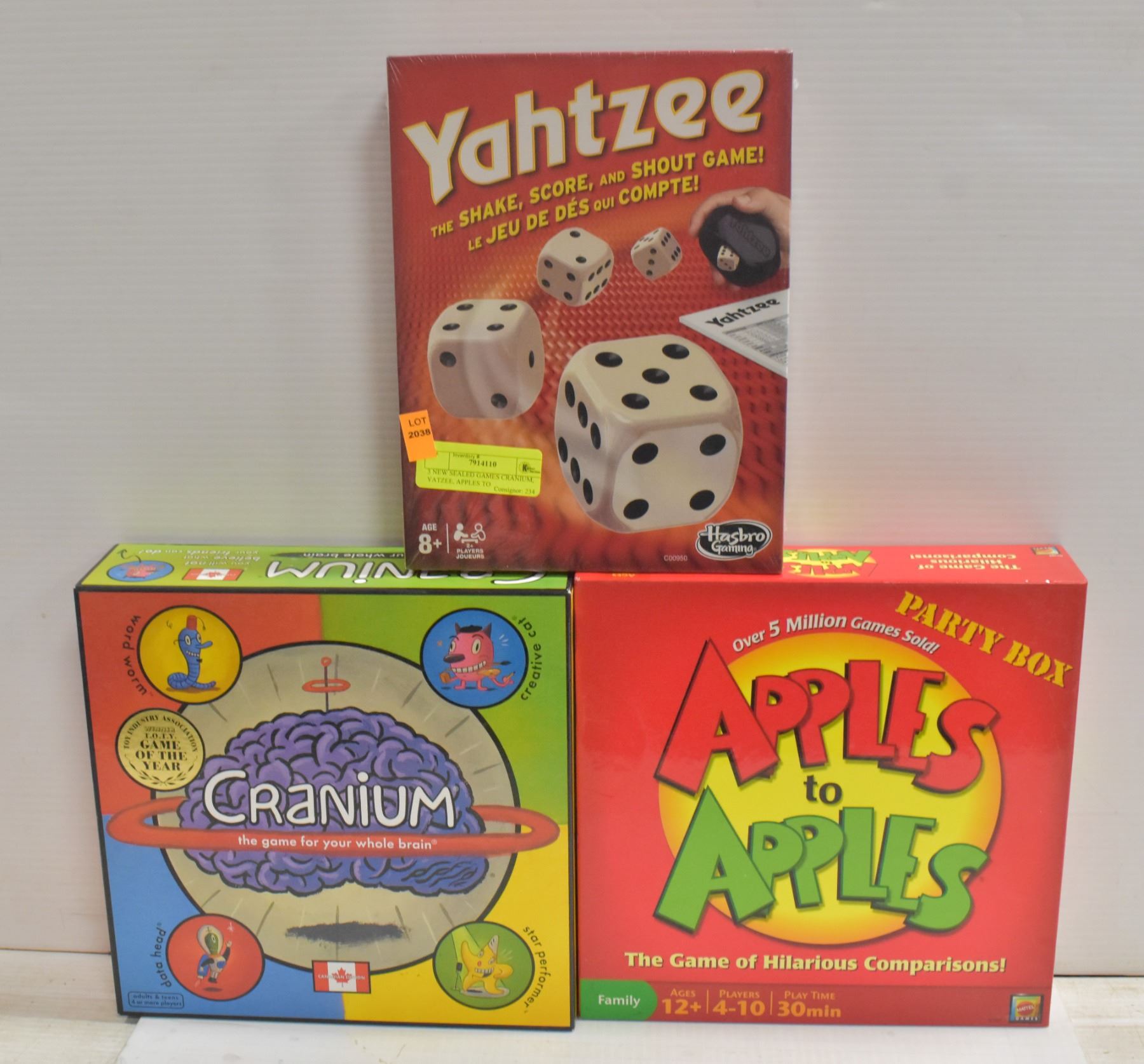 3 NEW SEALED GAMES CRANIUM, YATZEE, APPLES TO