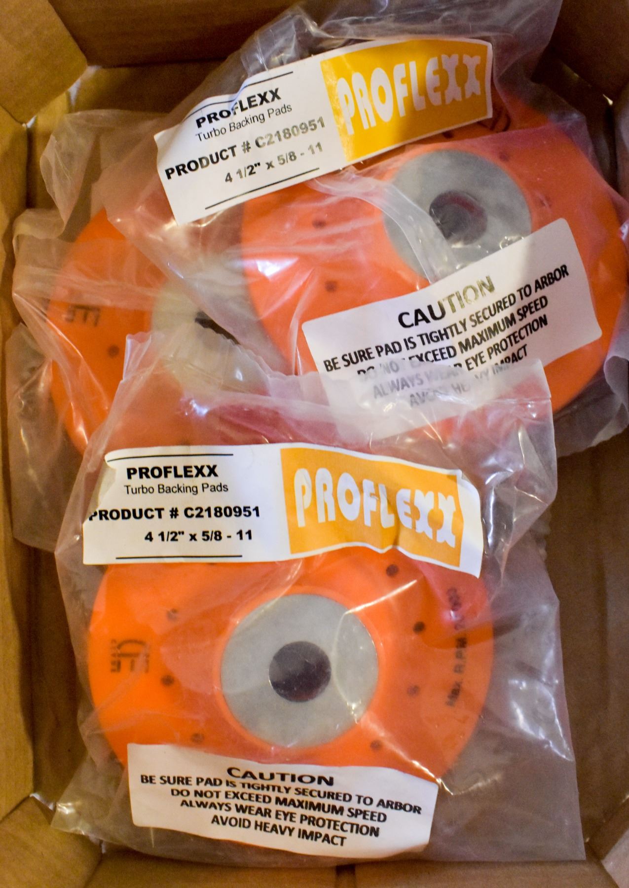 TURBO BACKING PADS 4.5" x 5/8" - 11 FOR USE WITH A RESIN FIBRE SANDING DISC ON AN ANGLE GRINDER, DESIGNED TO SUPPORT DISC AND BE FLEXIBLE ENOUGH TO ALLOW DISC TO RESPOND TO MATERIAL BEING SANDED, MODEL C2180951, EACH PAD RETAILS FOR 20.95 ON AMAZON