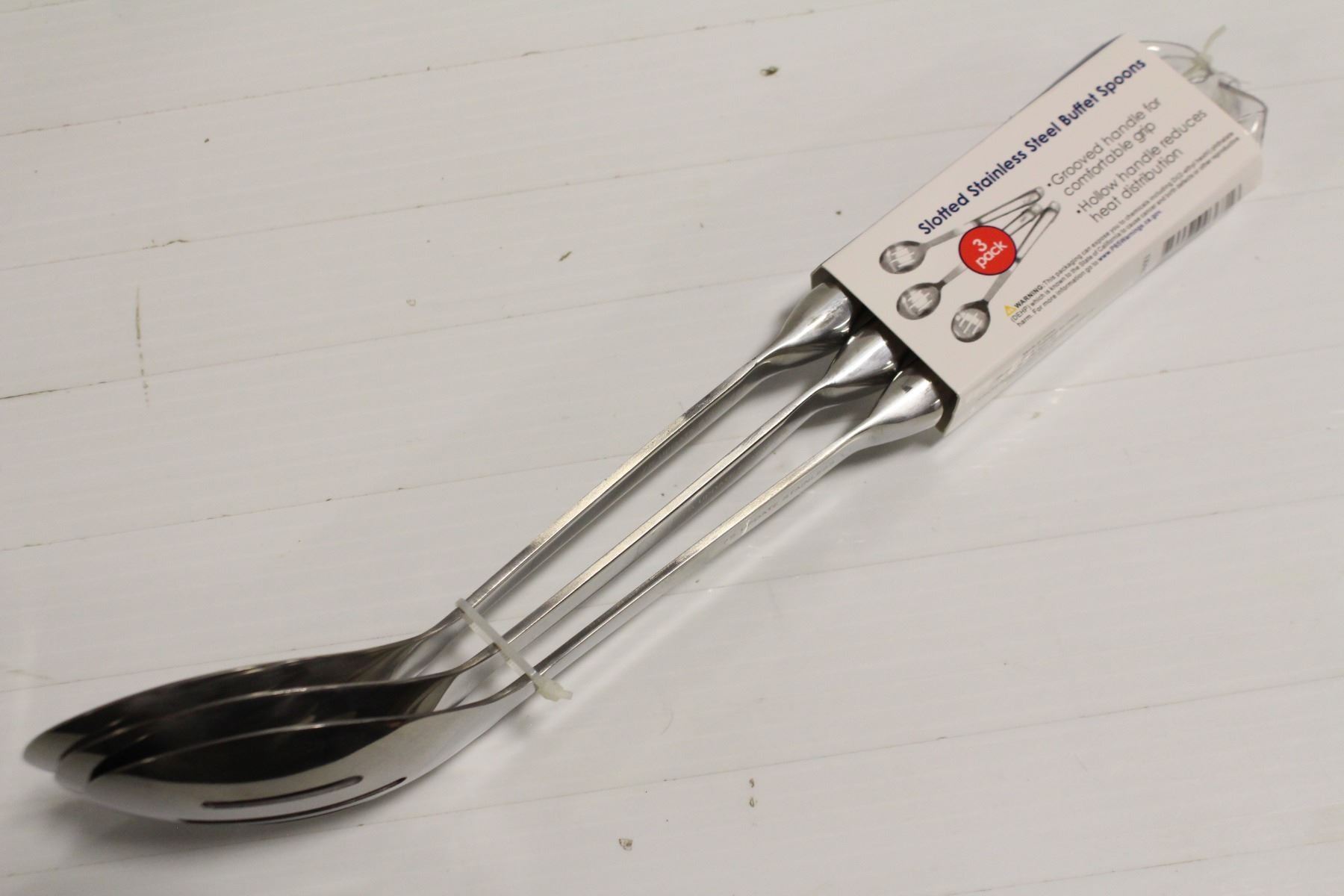 3 NEW UPDATE INTERNATIONAL SLOTTED STEEL SPOONS