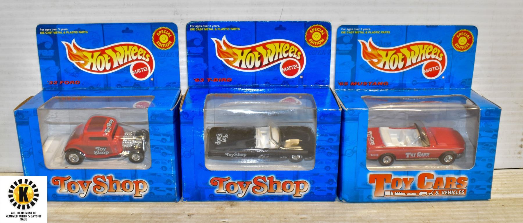 65 MUSTANG, 32 FORD, 63 T-BIRD - TOY SHOP & TOY CARS EXCLUSIVE HOT WHEELS FROM 1998 & 1999