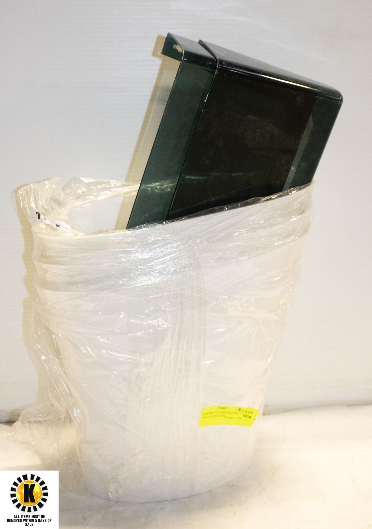 3 NEW WHITE GARBAGE CANS / 2 WALL FILE HOLDERS