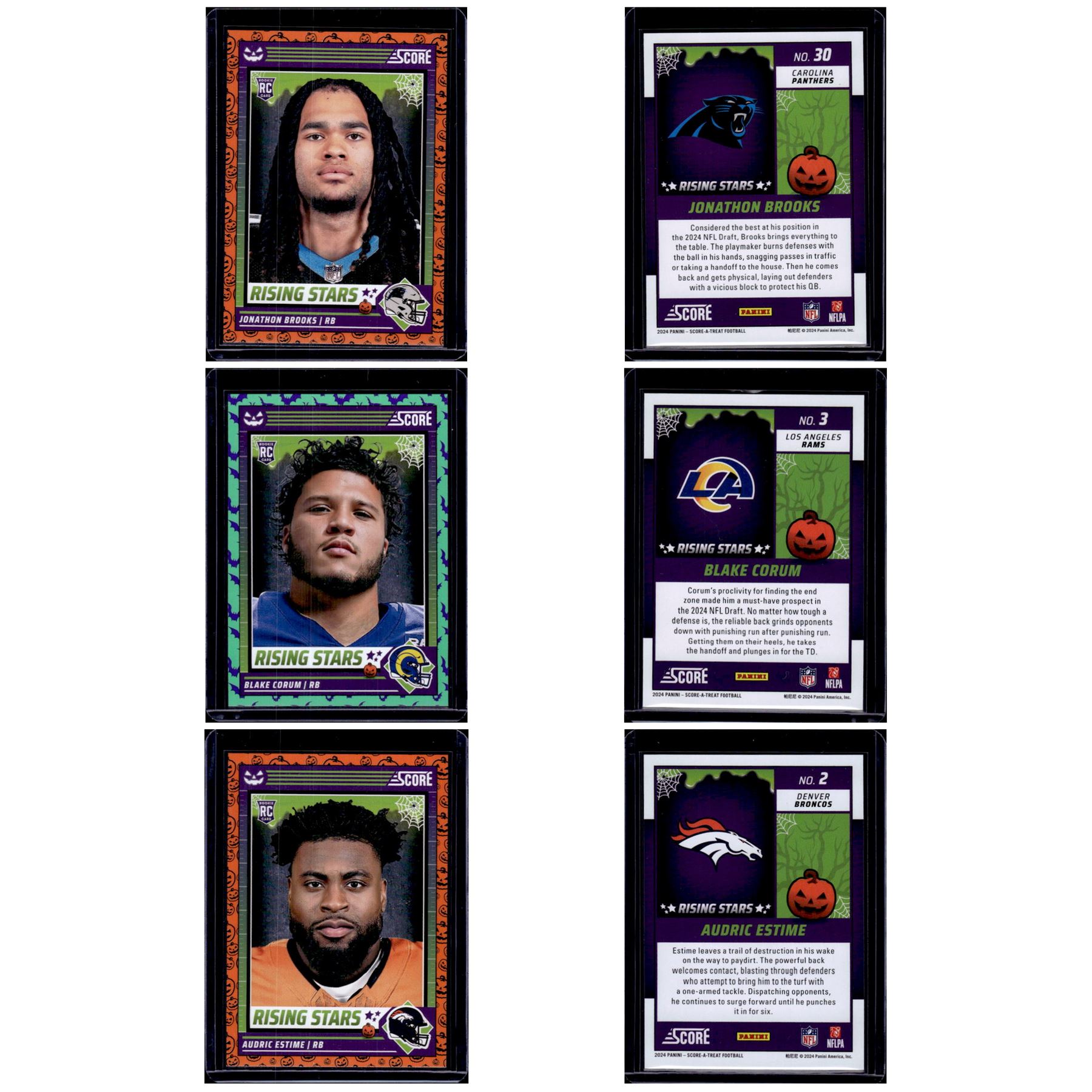 3 NFL RB RCs Panini Score A Treat Brooks, Corum, Estime