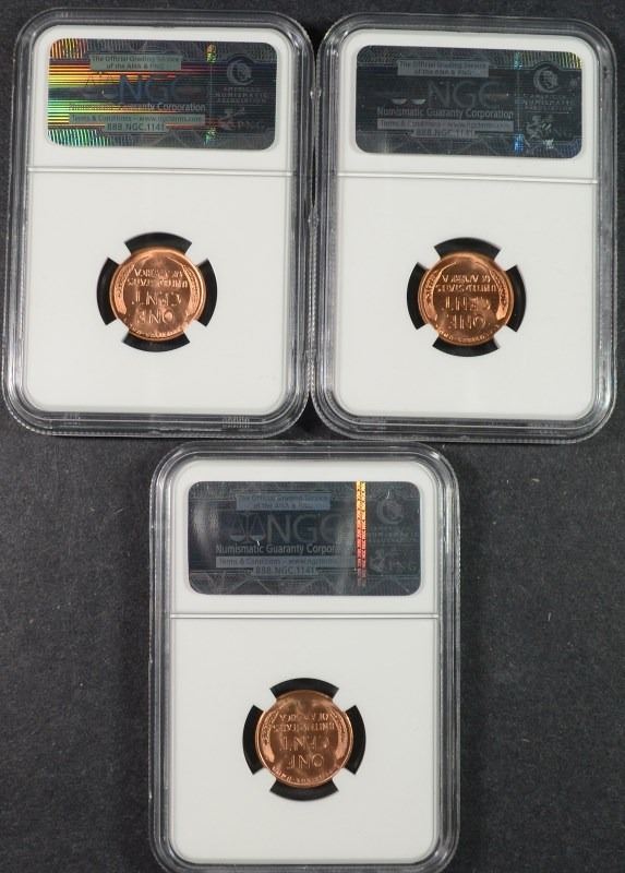 3 - NGC MS 66 RD LINCOLN WHEAT CENTS - 1949-S, 1954-S, 1955-S
